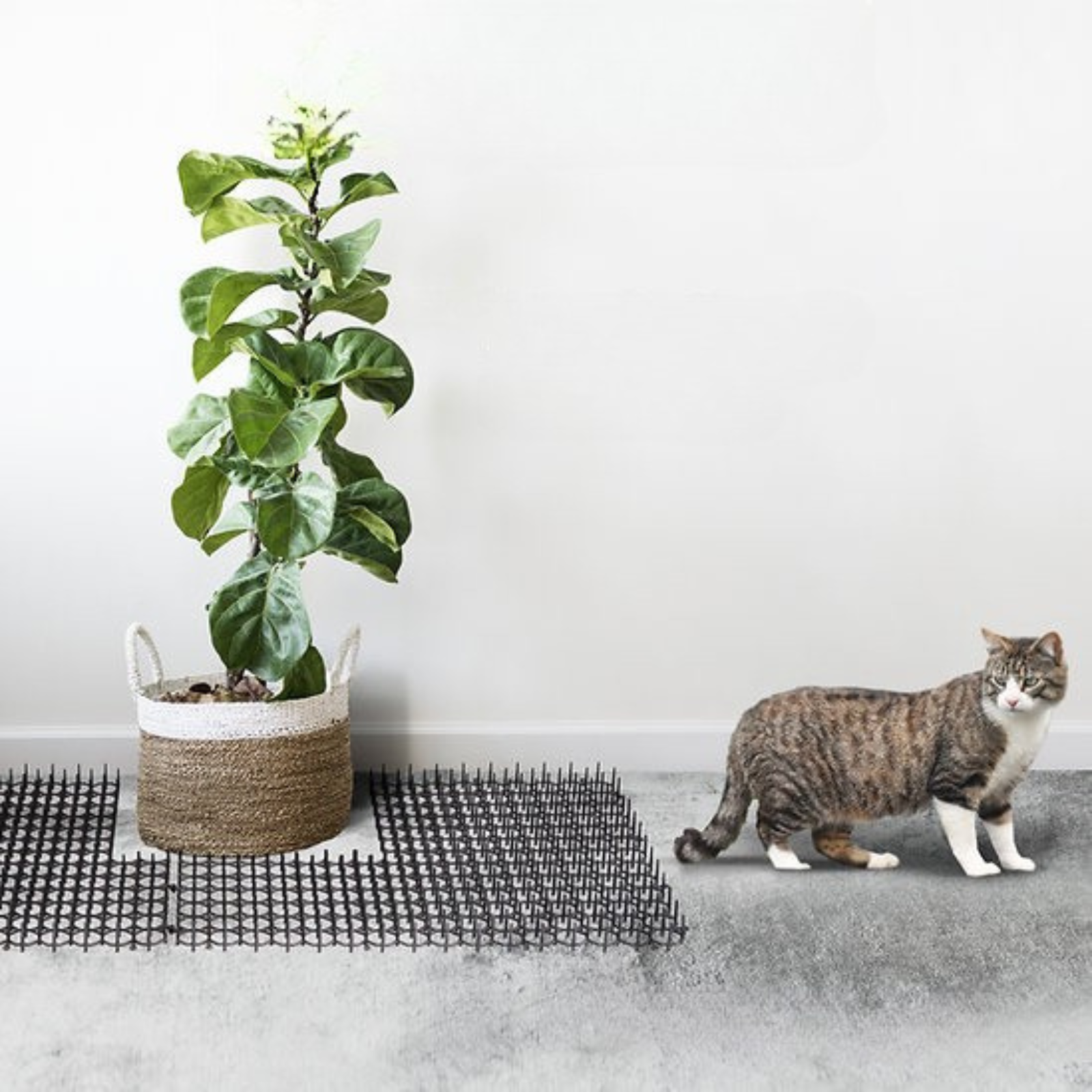 動物が侵入できないよう、トゲつきのマットで侵入防止