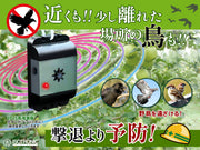 - 鳥の好まない周波数の超音波を出すので、鳥が習慣的に来るような場所で起こして、鳩やカラスなどの鳥よけの効果があります。