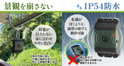 - 保護耐性:IP54(雨などの水しぶきのみ対応。水が溜まる場所への設置は避けてください。)